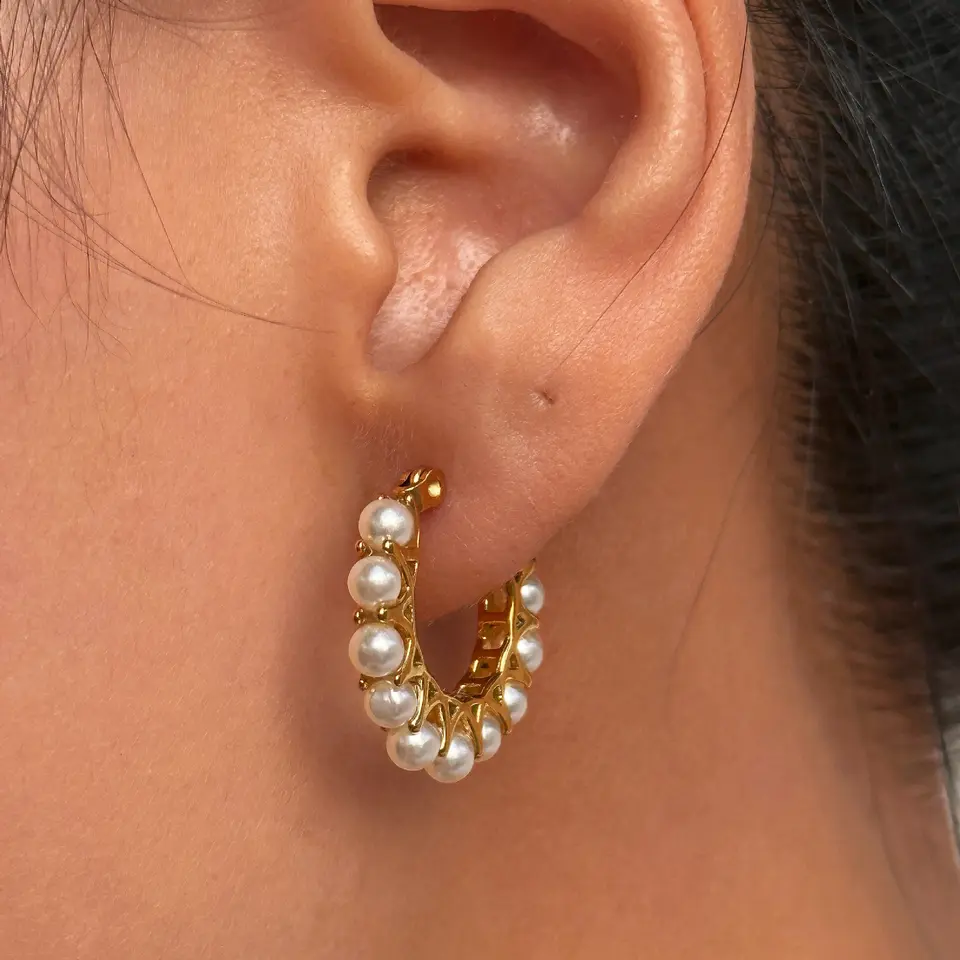 joyeria oro laminado 18 k Earrings Customize Gold Hoop Pearl Earrings 18K Gold Plated Pearl Jewelry Earrings Hoops for Women
